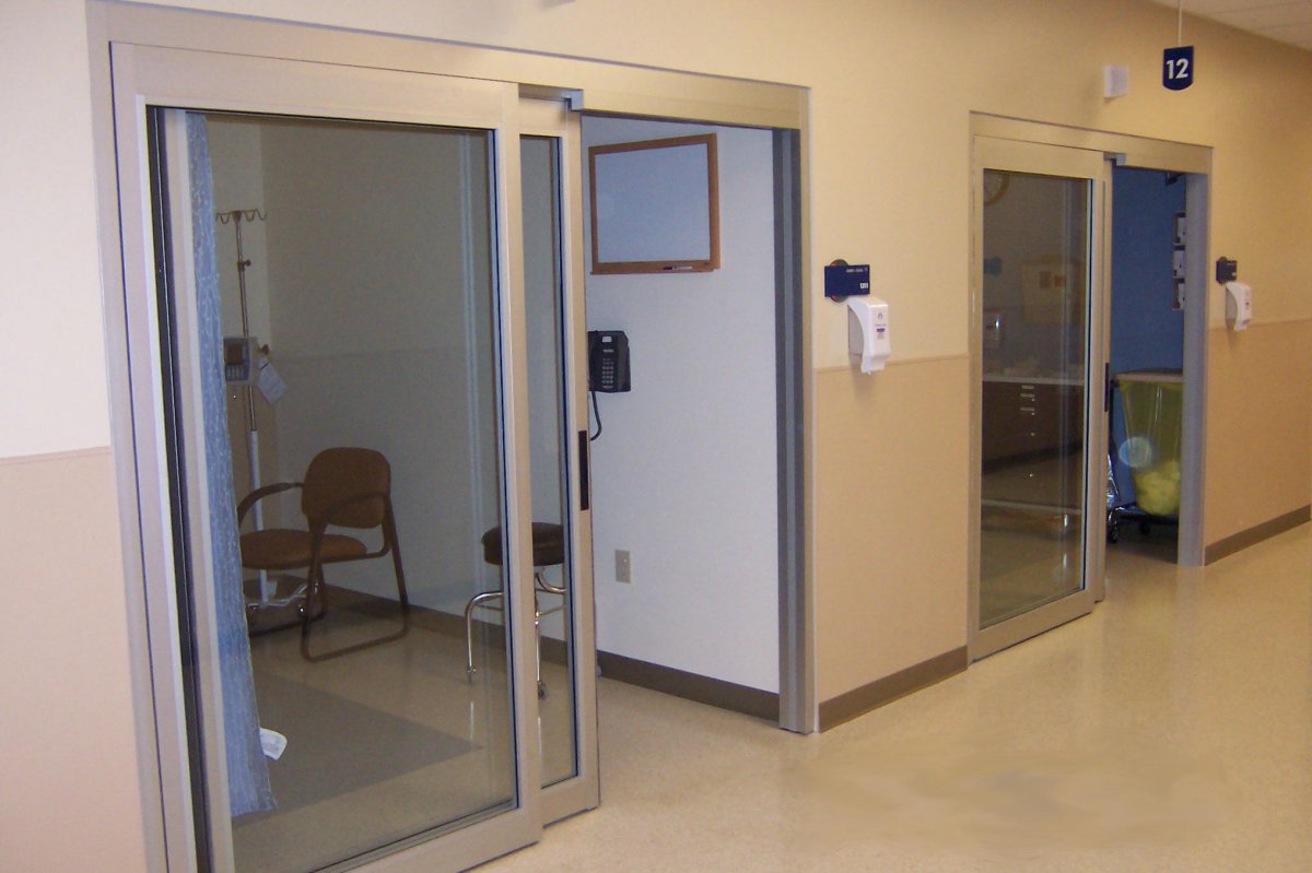Hospitals and medical facilities have specialized access needs that drive the toughest building codes. Doorrman continues to address these needs by developing first-to-market systems such as self-closing ICU/CCU door systems that requires no power. Staff and patients alike appreciate design details such as Mini-Blind and Opaque glass for privacy...
