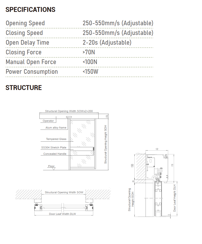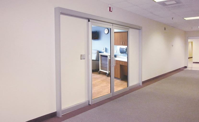 Hospdoor's automatic ICU door is available in a wide range of sizes, configurations, and finishes, single, biparting. A recessed track or trackless guide system allows for easy operation with or without a floor track being perfect access for hospitals and surgical centers.